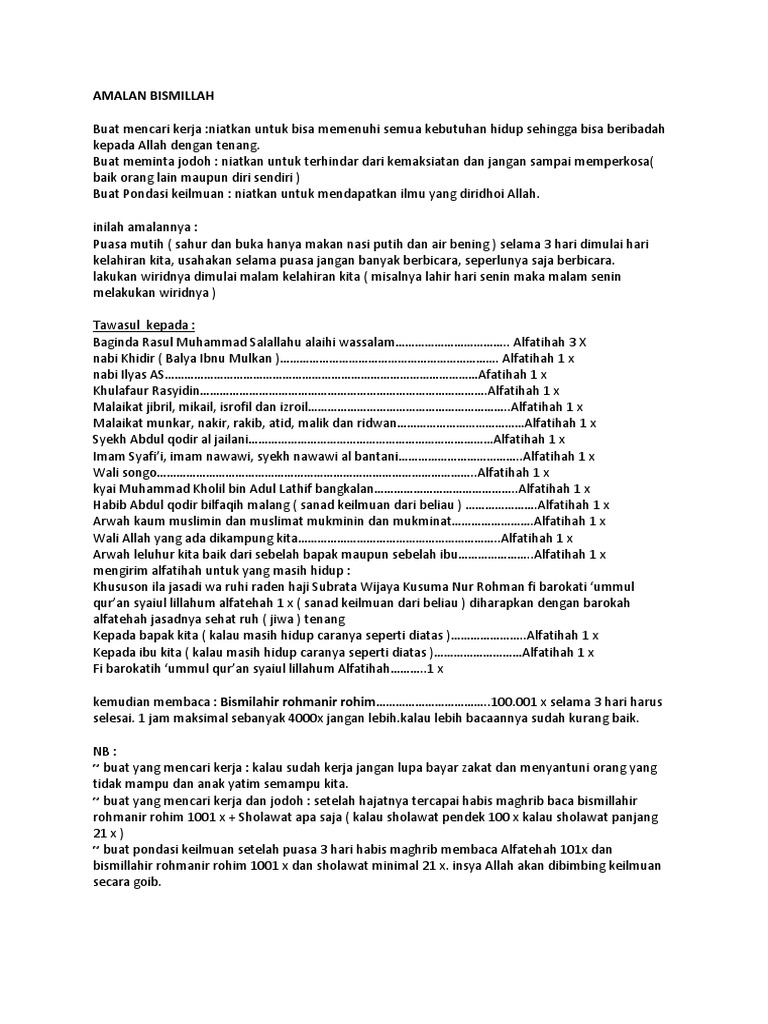 Wirid Bismillah Untuk Kekayaan Baca 786 Kali Agar Sukses Usaha from www.masterrizha.com Pos tentang amalan segala hajat yang ditulis oleh sakaganteng. Amalan bismillah 7 ini sangat popular dalam kalangan perawat pengubatan islam kerana mempercayai bahawa doa ini sangat mustajab untuk menerangkan hati, meluaskan rezeki, memakbulkan segala hajat, menghindarkan dari segala penyakit serta mengelakkan dari gangguan. Cara untuk merawat pesakit yang menderita kerana perkara diatas; Doa basmalah pengabul segala hajat. Dengan kerendahan hati dan mohon ampun kepada allah atas saya yg dhoif ini,untuk saya memberanikan diri mencoba membagi2 amalan doa kepada sedulur2 di kwa yg kita. 43 downloads 173 views 64kb size. Mungkin bagi kita yang awam ini terlalu susah untuk mngkhatamkannya walaupun ia bisa dicicil. Kehebatan bismillah untuk pelindung diri selama hidup.